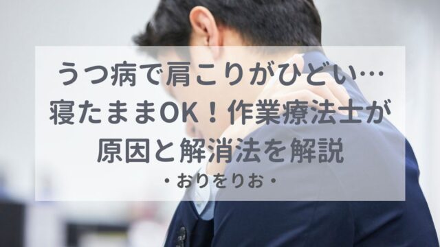 おりをりおのうつ病の「生活・工夫」 うつ病で肩こりがひどい…寝たままOK!作業療法士が原因と解消法を解説 うつ病で肩こりがひどくてつらいあなたへ。作業療法士の私が、その原因と、体力がない時でも寝たままできる効果的な解消法を解説。 2024.07.18 おりをりおのうつ病の「生活・工夫」