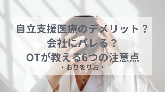 支援サービス・制度 【うつ病】自立支援医療のデメリットは?会社にバレる?OTが教える6つの注意点 「自立支援医療制度を使うと会社にバレる?就職は不利?」そんな不安を抱えていませんか?うつ病当事者が制度のデメリットと対処法を徹底解説。安心して治療を続けるための情報満載。 2024.06.24 支援サービス・制度